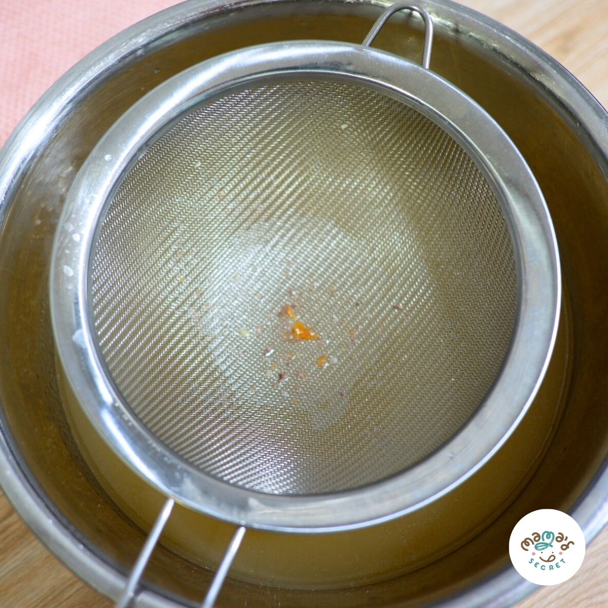 ขั้นตอนที่ 9 พอตุ๋นครบเวลา ให้ปิดไฟเตาแล้วพักให้น้ำซุปเย็นสักหน่อย จากนั้นกรองแยกเอาน้ำออก แล้วแพกใส่กล่อง หรือถุงเก็บน้ำซุปได้เลย เป็นอันเสร็จเรียบร้อนจ้า